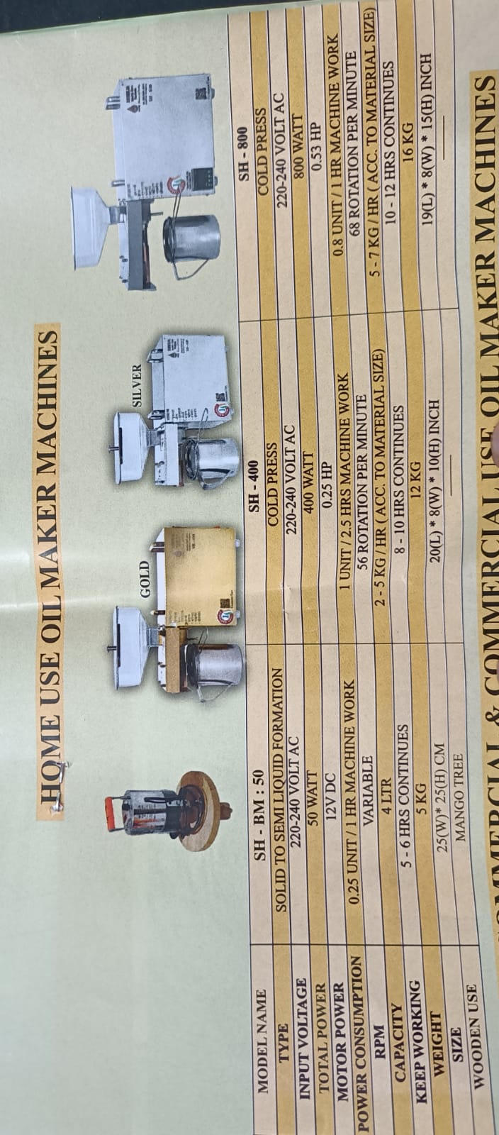 या द्वारे तुम्ही शेंगदाणा तेल ,सोयाबीन तेल ,मोहरी तेल ,खोबरे तेल इ तयार करू शकता .